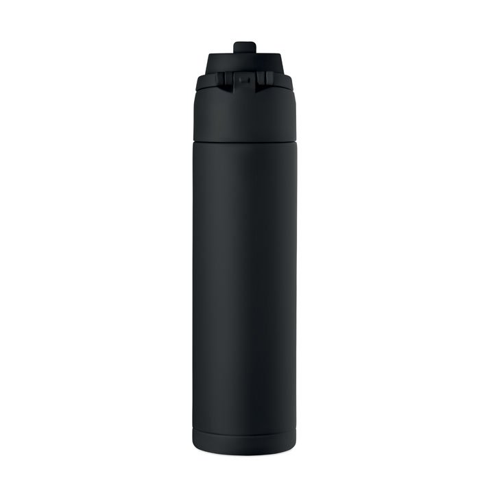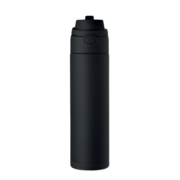 AVVISAMIBottiglia singolo strato in acciaio inox riciclato (90% inox riciclato e 10% acciaio inox). Dispone di una cannuccia 2 in 1 e di un coperchio in PP con manico. Senza perdite. Capacità: 650 ml.