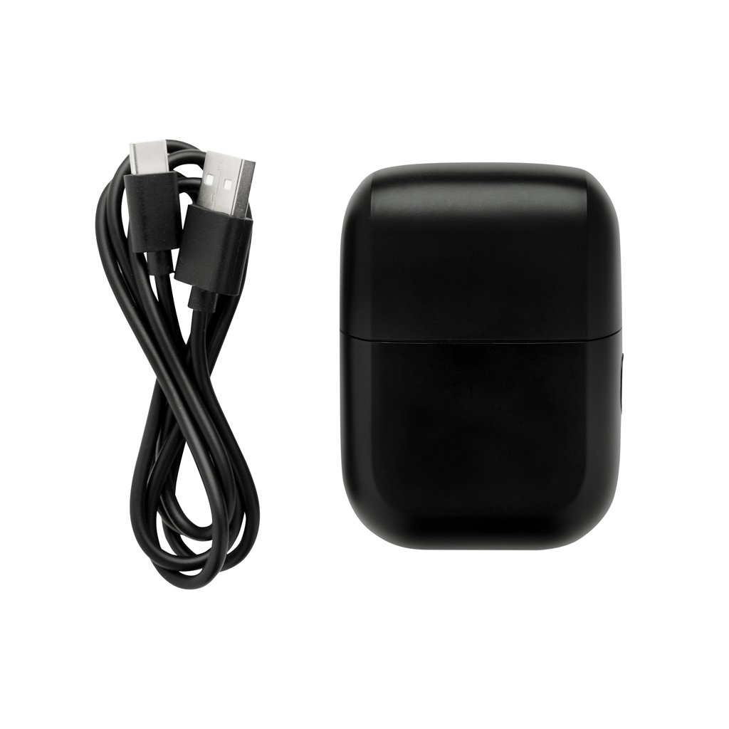 AVVISAMITrimBlade è un rasoio ricaricabile portatile progettato per una cura personale facile ovunque ti trovi. Compatto e facile da trasportare, offre prestazioni affidabili con fino a 2 ore di autonomia con una singola ricarica, garantendoti tutta la potenza necessaria per l'uso quotidiano o in viaggio. TrimBlade è adatto sia per la rasatura a secco che a umido, consentendoti di prenderti cura di te in tutta comodità. Dotato di due resistenti lame in acciaio inossidabile, offre una rasatura precisa e liscia e può essere facilmente risciacquato sotto l'acqua corrente per una semplice manutenzione. Il display integrato ti tiene informato sullo stato della batteria e sull'utilizzo, mentre il blocco da viaggio incorporato impedisce l'attivazione accidentale quando viene riposto nella borsa o nel bagaglio. Progettato per la praticità, TrimBlade è facile da mantenere, garantendo prestazioni di lunga durata e un uso igienico ovunque ti porti la giornata. L'articolo e gli accessori sono privi di PVC